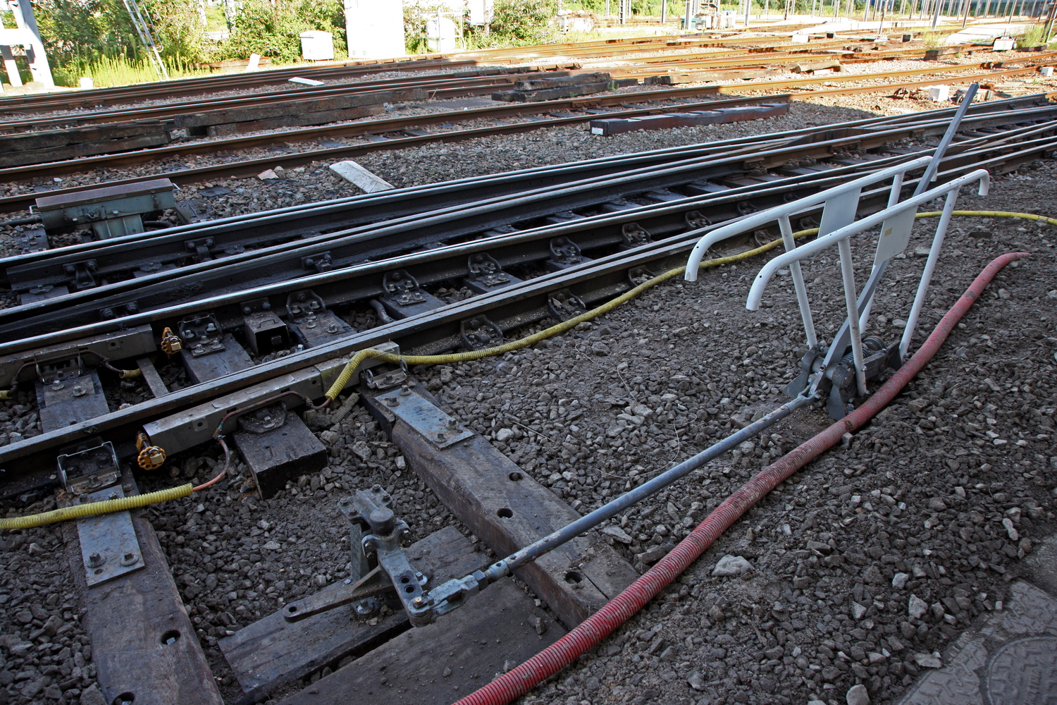 Après avoir renforcé nos équipes, nous sommes actuellement en train de déposer les moteurs permettant habituellement de bouger les aiguilles (car ils ne sont plus alimentés électriquement) et de les remplacer par des leviers (photos), qui, même si l’opération nécessite un certain effort physique, sont plus faciles à manipuler à la main.