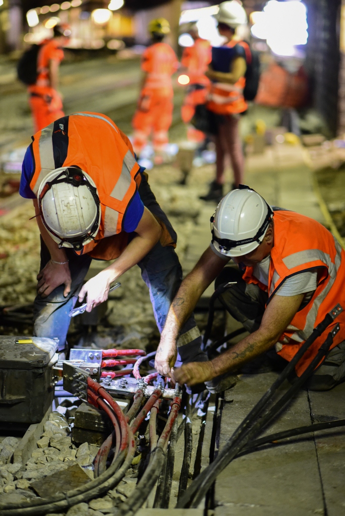 – Le renouvellement de 9 appareils de voie au niveau de la gare des Invalides. Ces aiguillages, très sollicités dans cette zone fréquentée par 24 trains par heure, gagneront ainsi en fiabilité et permettront d’éviter certains incidents préjudiciables pour l’ensemble de la ligne.