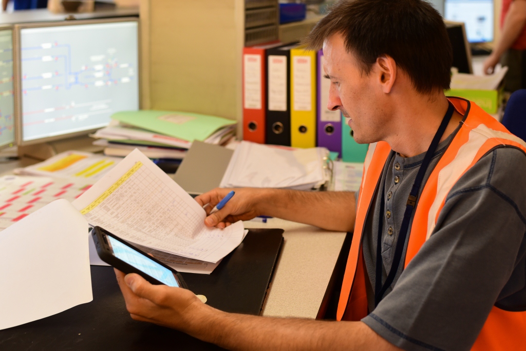 - Le Responsable du planning prévisionnel de l’organisation des Travaux, au Poste de Commandement des Invalides. @Bernard Baudin