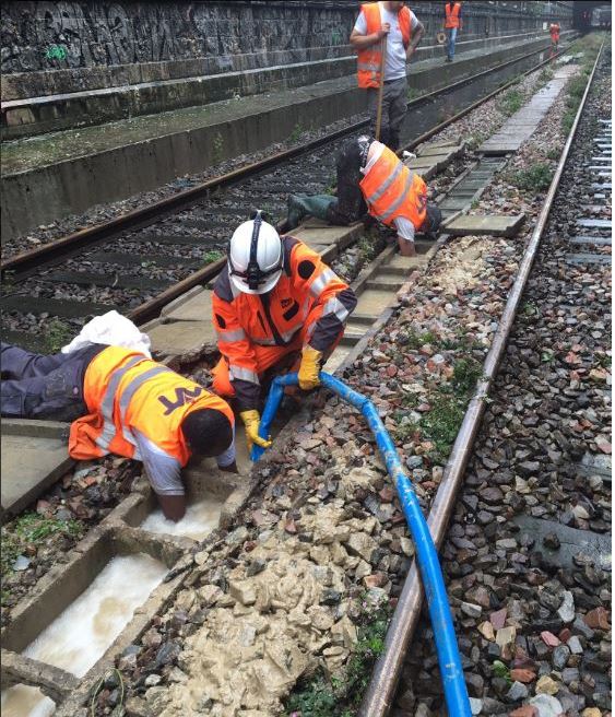 - gare fermée, un long travail de pompage pour évacuer l eau