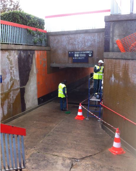 A Rungis la Fraternelle, c’est l’association Biorythme qui s’est chargée de rénover certaines parties très vieillissantes de la gare: le hall d’accueil et de vente, une partie de la façade, les escaliers d’accès ainsi que le passage sous terrain et les accès à la gare.