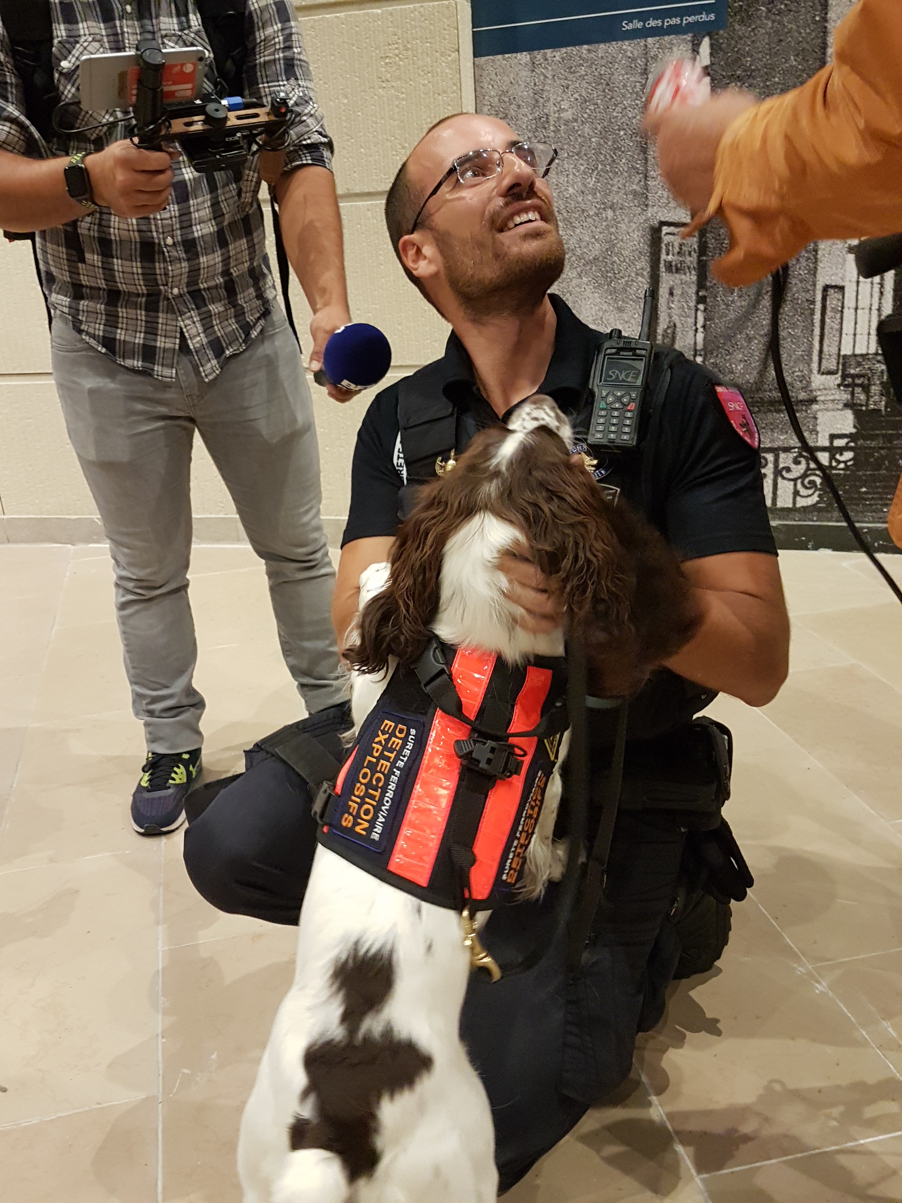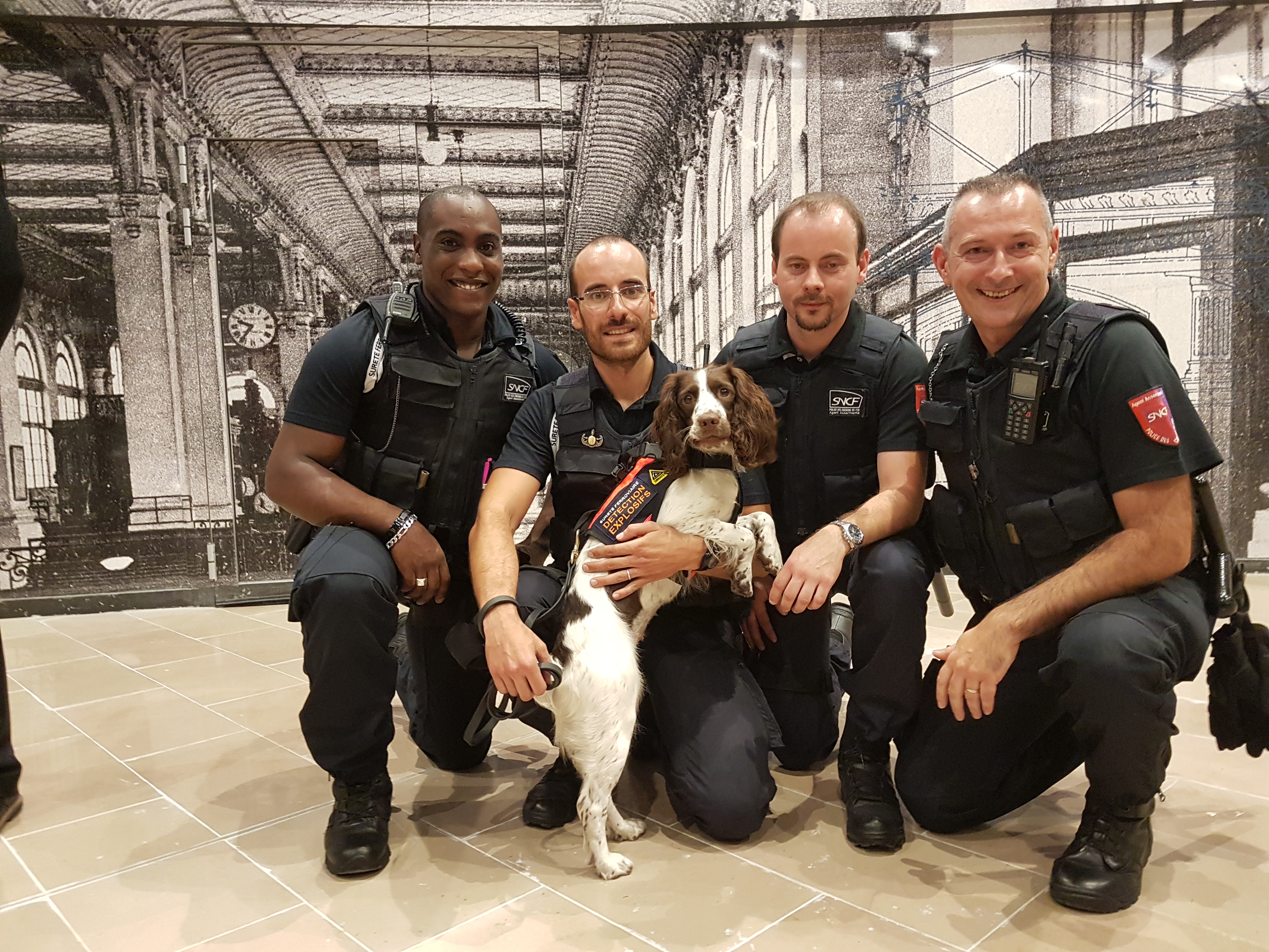 A la demande d’Ile-de-France Mobilités, SNCF (SNCF Transilien et la Direction de la Sûreté) a donc travaillé au déploiement de ces équipes de cyno-détection. Chaque équipe est composée d’un maître-chien, associé à un chien spécialement dressé pour détecter les explosifs!