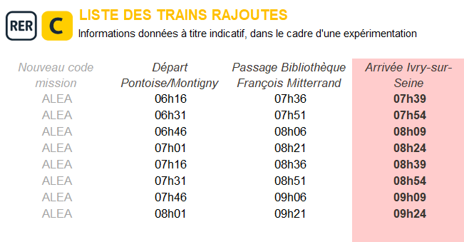 *Seule la liste des trains ajoutés seront rendus terminus Ivry-sur-Seine.